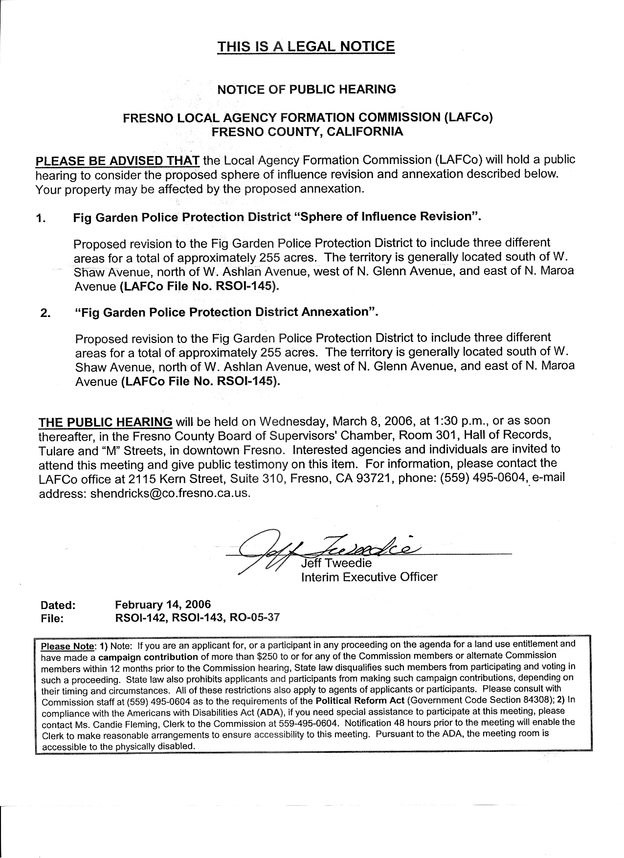 Here is a copy of the LAFCo Legal Notice.