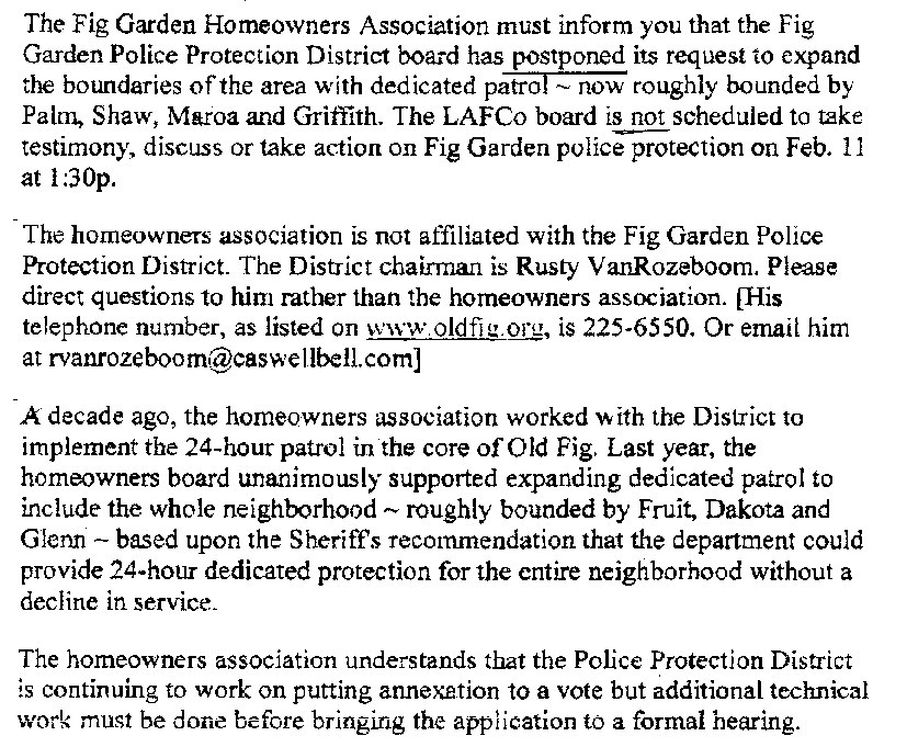 NoAnnex.com's sole purpose is to help defeat the proposed annexation by the Fig Garden Police Protection District.
